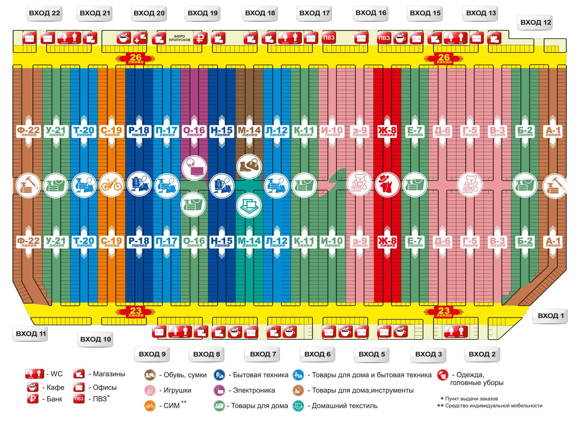 Схема рядов торгового комплекса